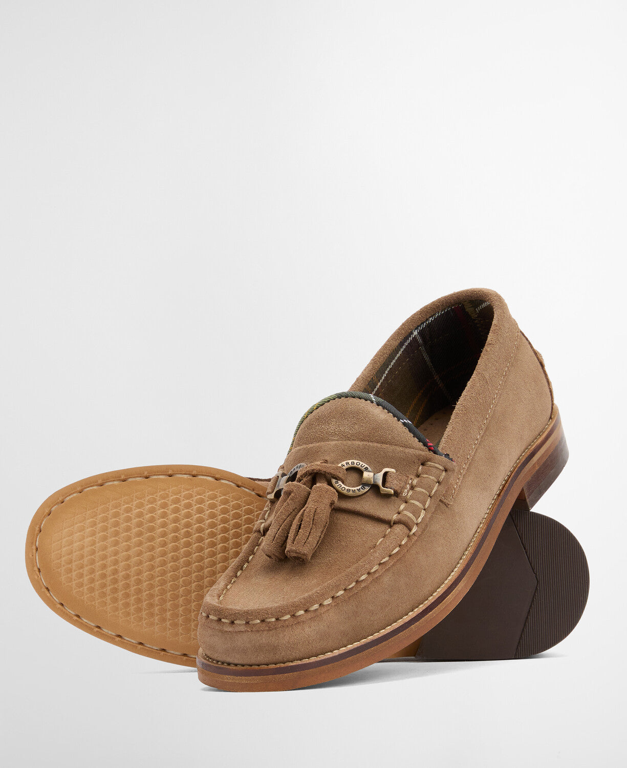 Embrace the trends of the season while adding a timeless classic to your footwear collection with the Barbour Jen Loafers. Crafted from 100% suede in a versatile taupe shade, these loafers deliver comfort and understated elegance. The signature Barbour snaffle detail and classic tartan lining add distinctive character, making them the perfect choice for those seeking quality craftsmanship with enduring style. Effortlessly versatile, they transition seamlessly from casual weekends to smart-casual occasions.