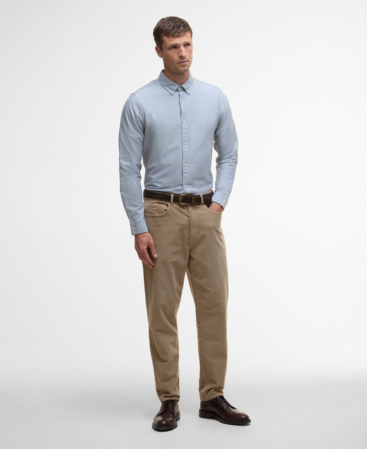 The Barbour Oxtown Tailored Shirt in Bluestone combines premium 100% cotton with a classic Oxford weave for lasting comfort and style. Tailored to fit perfectly, it offers a refined silhouette that enhances your look effortlessly. Finished with subtle signature branding, this shirt elevates your casual wardrobe—pair it with denim and loafers for a smart weekend outfit that stands out.
