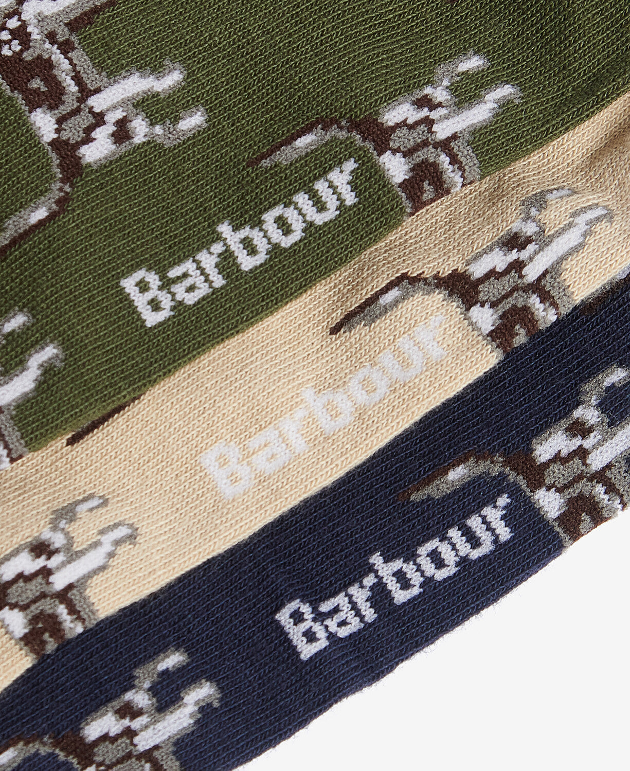Treat the dog lover in your life to the Barbour Pointer Dog Socks Gift Box in forest mist. This charming set features three pairs of premium cotton-rich socks, each adorned with a delightful repeating pointer dog motif that celebrates countryside heritage with playful style. Crafted for comfort and durability, these socks combine quality construction with character that goes beyond everyday basics. Presented in distinctive Barbour branded packaging, it's an instantly giftable collection that requires no wrapping. Perfect for birthdays, holidays, or simply showing appreciation, this thoughtful set proves that the best gifts combine practicality with personality.