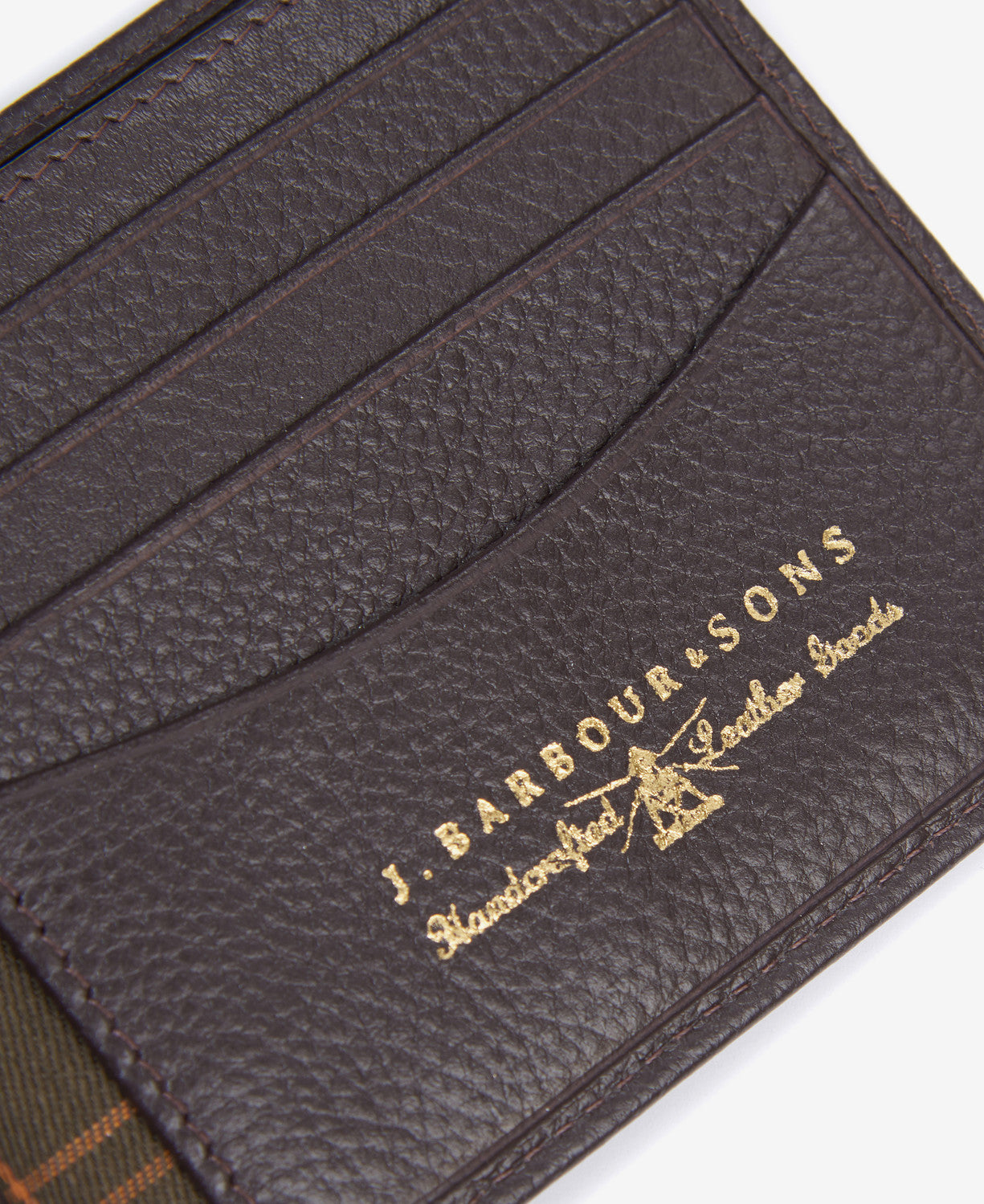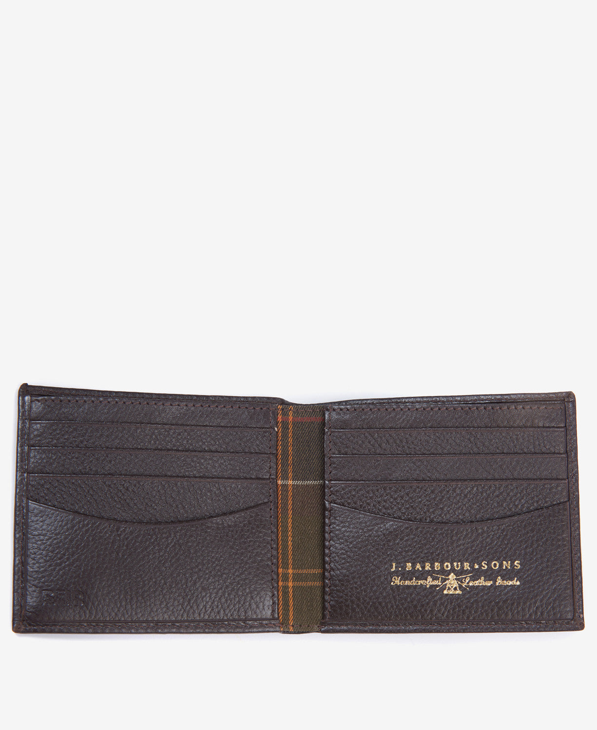 Grain leather billfold wallet with tartan trim to the inner.