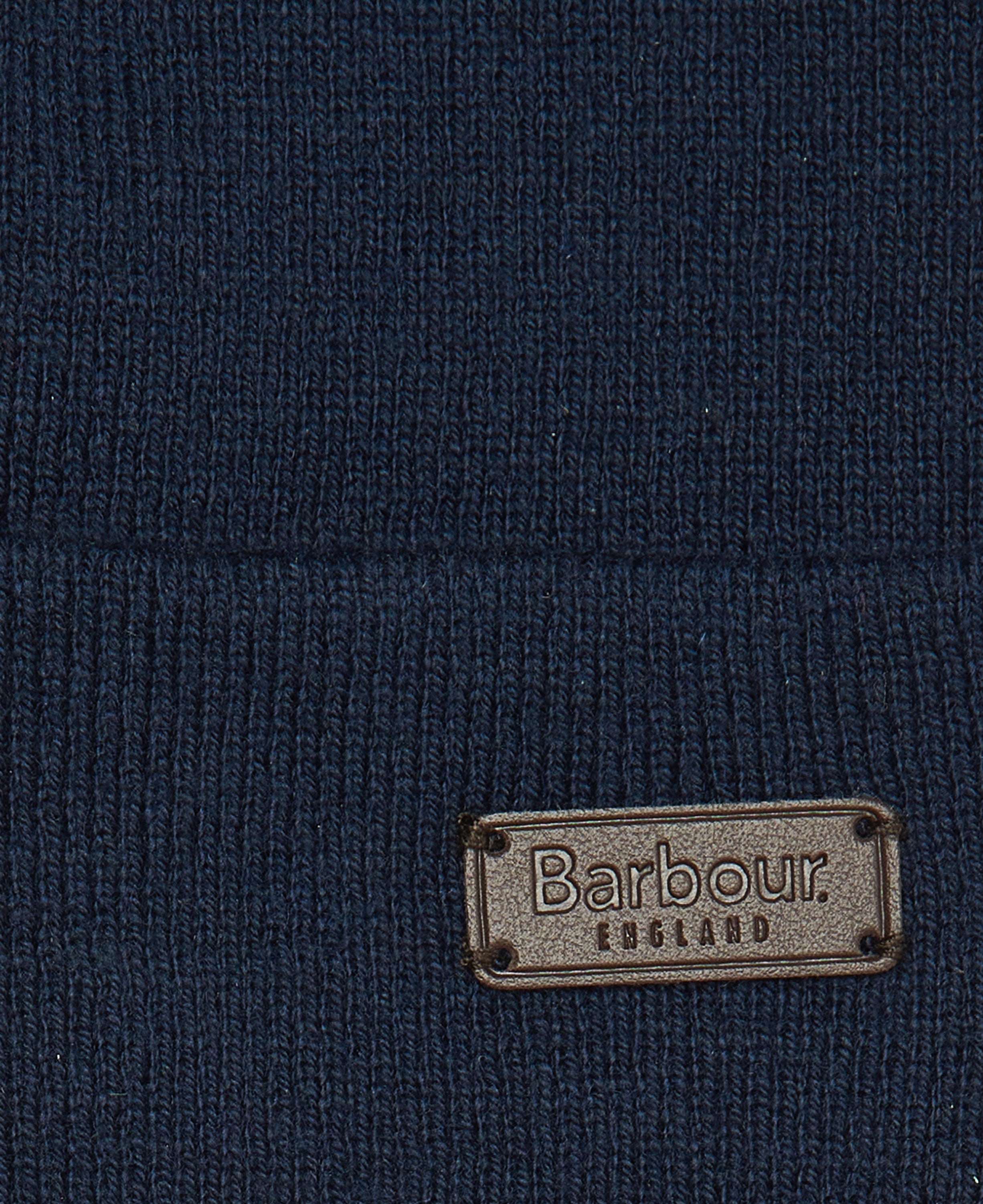 Barbour logo printed to outer front of travel mug. Embossed Barbour badge to outer of beanie.
