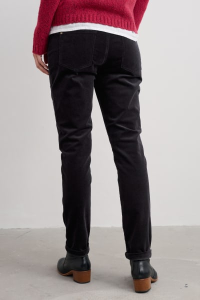 Experience the perfect blend of comfort and style with the Seasalt Lamledra Trousers in Onyx. These beautifully soft cord trousers feature a flattering slim fit with just the right amount of stretch for all-day ease. Designed with classic jeans details, including a zip fly, front and back pockets, and anchor-branded rivets, they bring timeless appeal to your wardrobe. For added comfort, sizes 18-28 have an elasticated back waistband, making these trousers a must-have for cooler days. Elevate your everyday look with versatile, cozy sophistication.