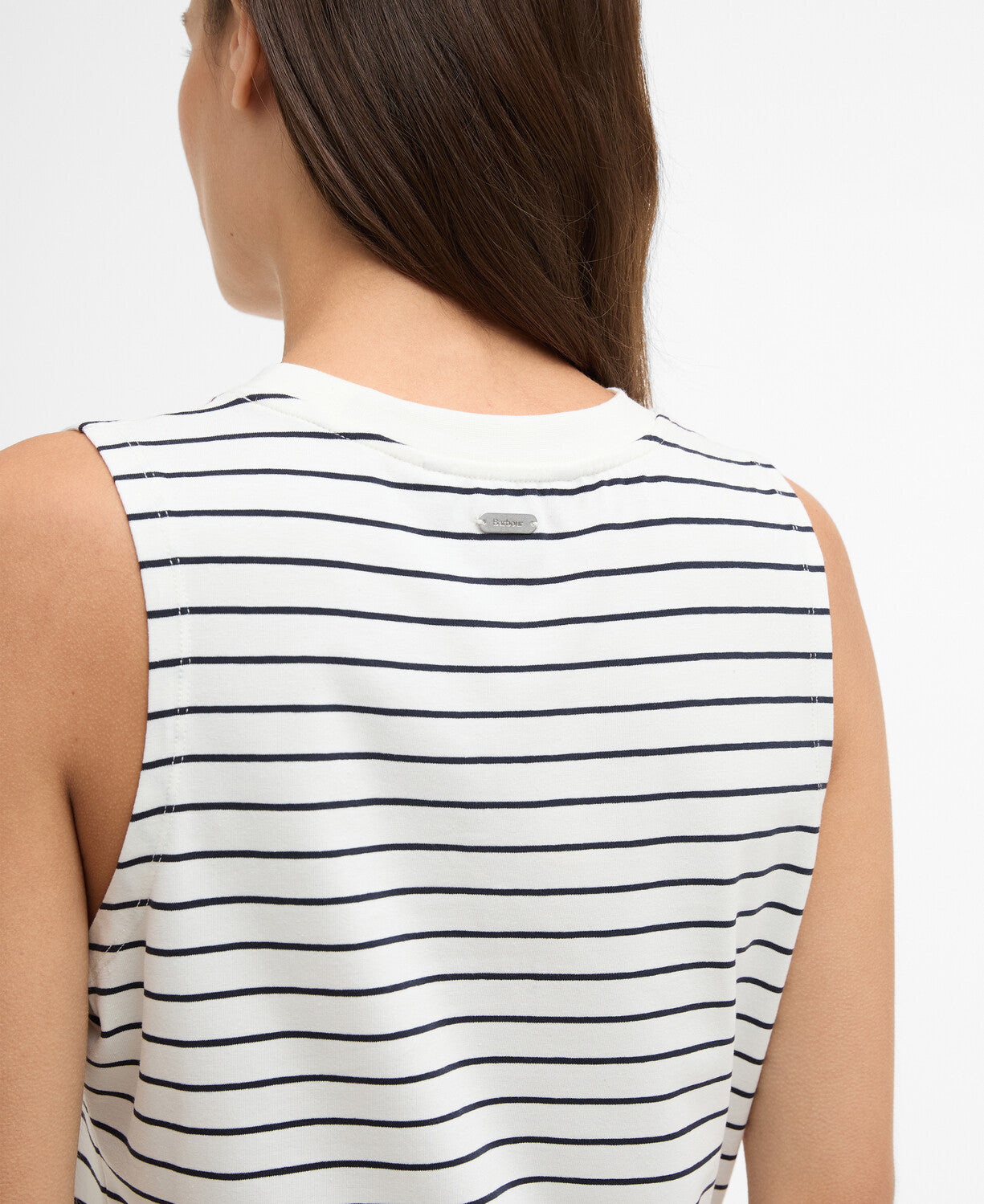 The Barbour Hartland Striped Mini Dress is your go-to piece for building a versatile wardrobe. This timeless design features a soft stretch jersey fabric that moves with you, paired with the iconic Barbour logo embroidery on the chest for understated sophistication. The cloud and navy stripe pattern works effortlessly with trainers for casual days or sandals for weekend adventures. A true wardrobe essential that transitions seamlessly from season to season, this dress proves that simplicity and quality never go out of style.