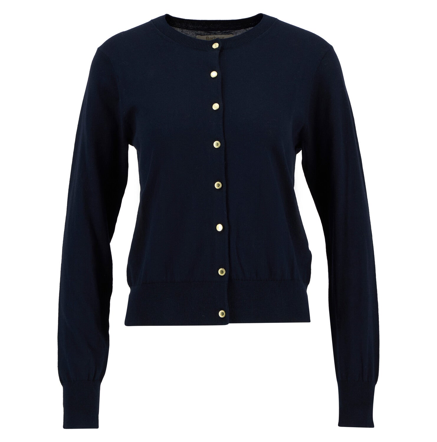 Elevate your everyday wardrobe with the Barbour Wisteria Knitted Cardigan, a timeless piece that seamlessly blends sophistication with comfort. Crafted from premium 100% cotton single bed knit, this slim-fit cardigan features a refined crew neck and expertly tailored armhole and neckline shaping for a flattering, modern silhouette. Distinctive Barbour branded mock horn buttons line the front placket, whilst a sleek metal ID bar at the back neck adds an authentic finishing touch. Perfect for layering over your favourite pieces, this versatile cardigan delivers understated elegance that works beautifully from season to season.