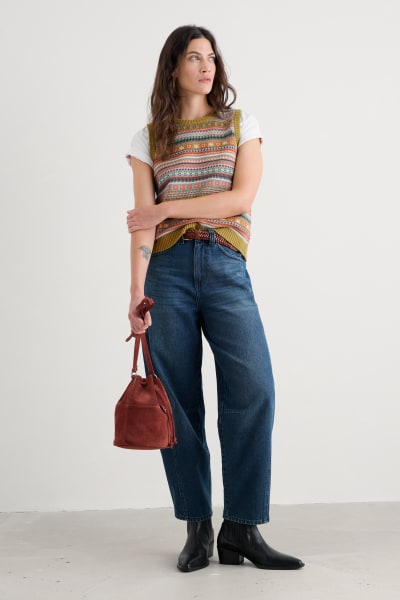 This Seasalt Cove Cottage Cardigan combines timeless Fair Isle charm with the comfort of organic cotton. Its mid-weight knit offers breathable warmth, making it ideal for layering through changing seasons. Bold, colourful stripes brighten your outfit, while ribbed trims add a refined, traditional finish. Versatile and stylish, it pairs effortlessly with T-shirts, dresses, or shirts—unlock endless styling possibilities with this classic, cosy cardigan.